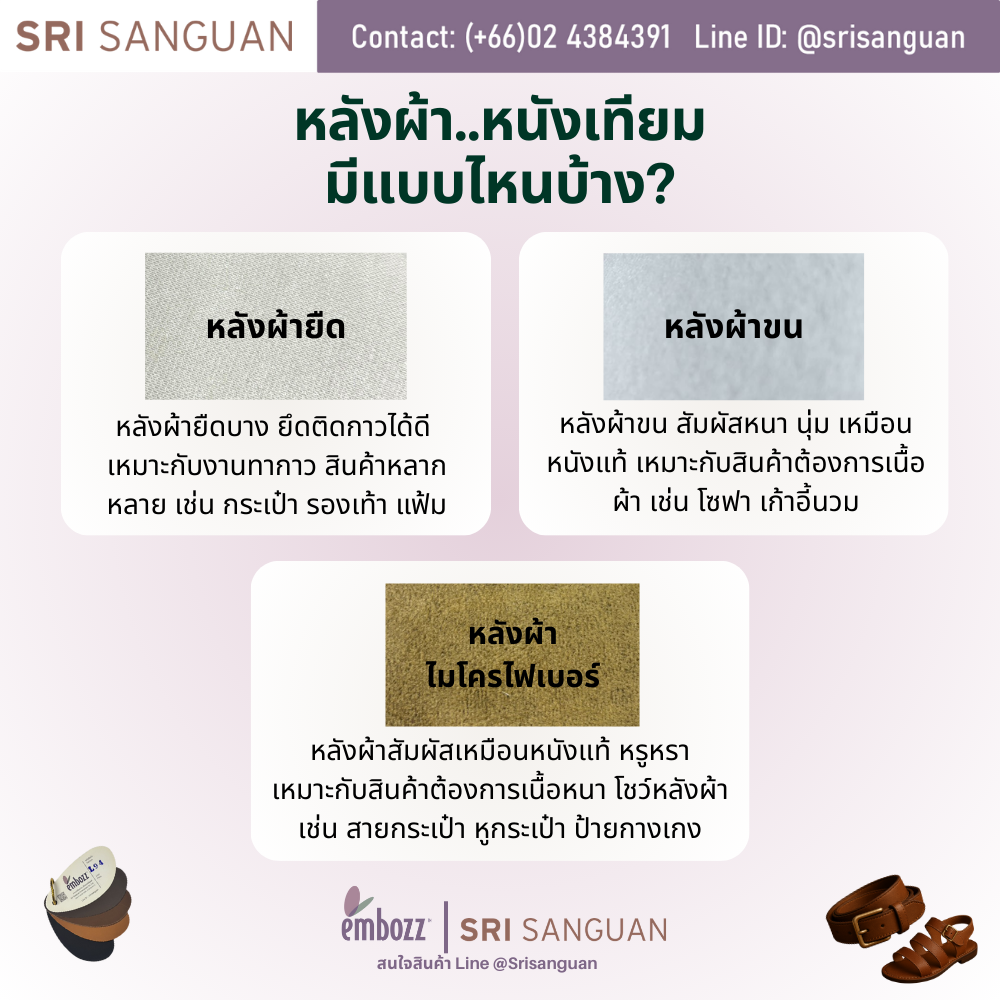 หลังผ้าหนังเทียม แบ่งได้หลักๆ 3 แบบ ตามลักษณะพื้นผิวและวัสดุ ซึ่งเหมาะในการใช้งานที่แตกต่างกัน