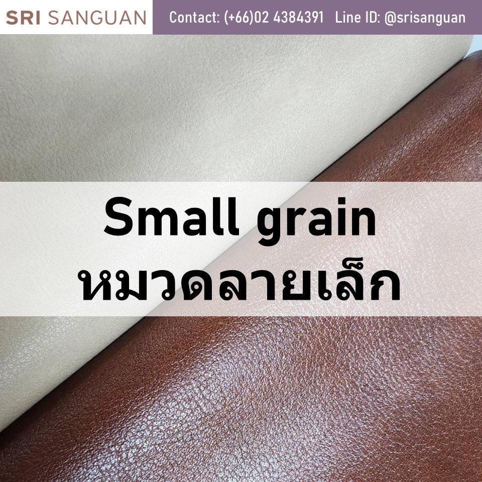 • Small grain: Leather that emphasizes fine, small grains, offering a more refined feel and pattern than other leathers. Sometimes, two-tone printing techniques are used to enhance the texture and appearance of genuine leather.
