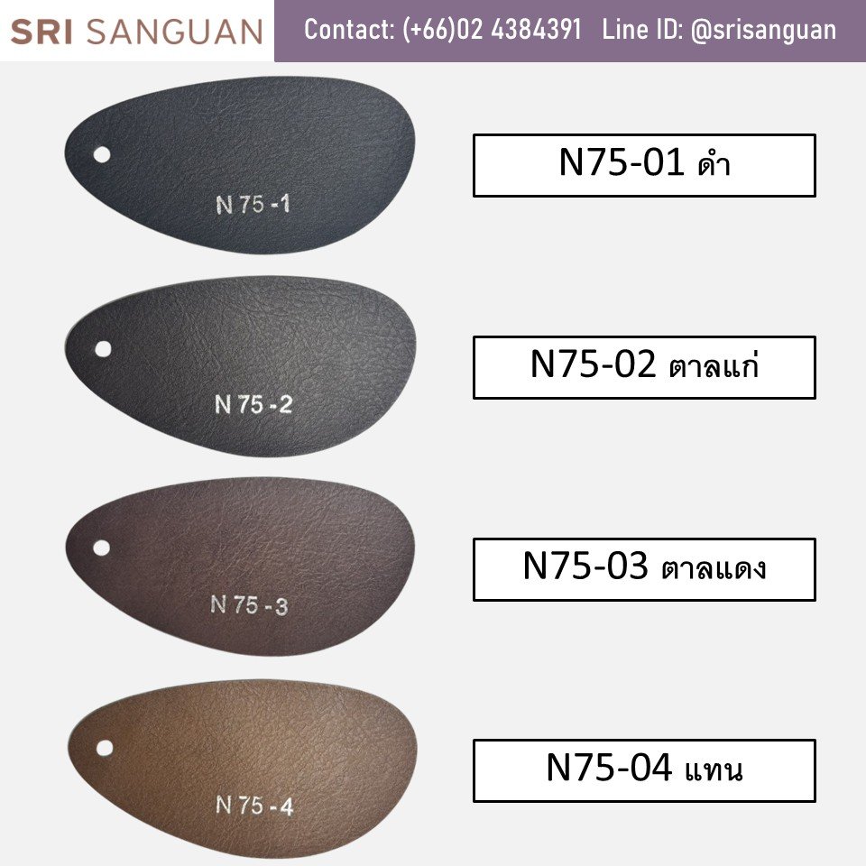 N75 PVC faux leather with a matte finish, 1.8mm thick, with a wrinkled pattern and polyester backing. It resembles genuine leather. Available in 4 colors. Ideal for bag straps, hard bags, handles, and belts.
