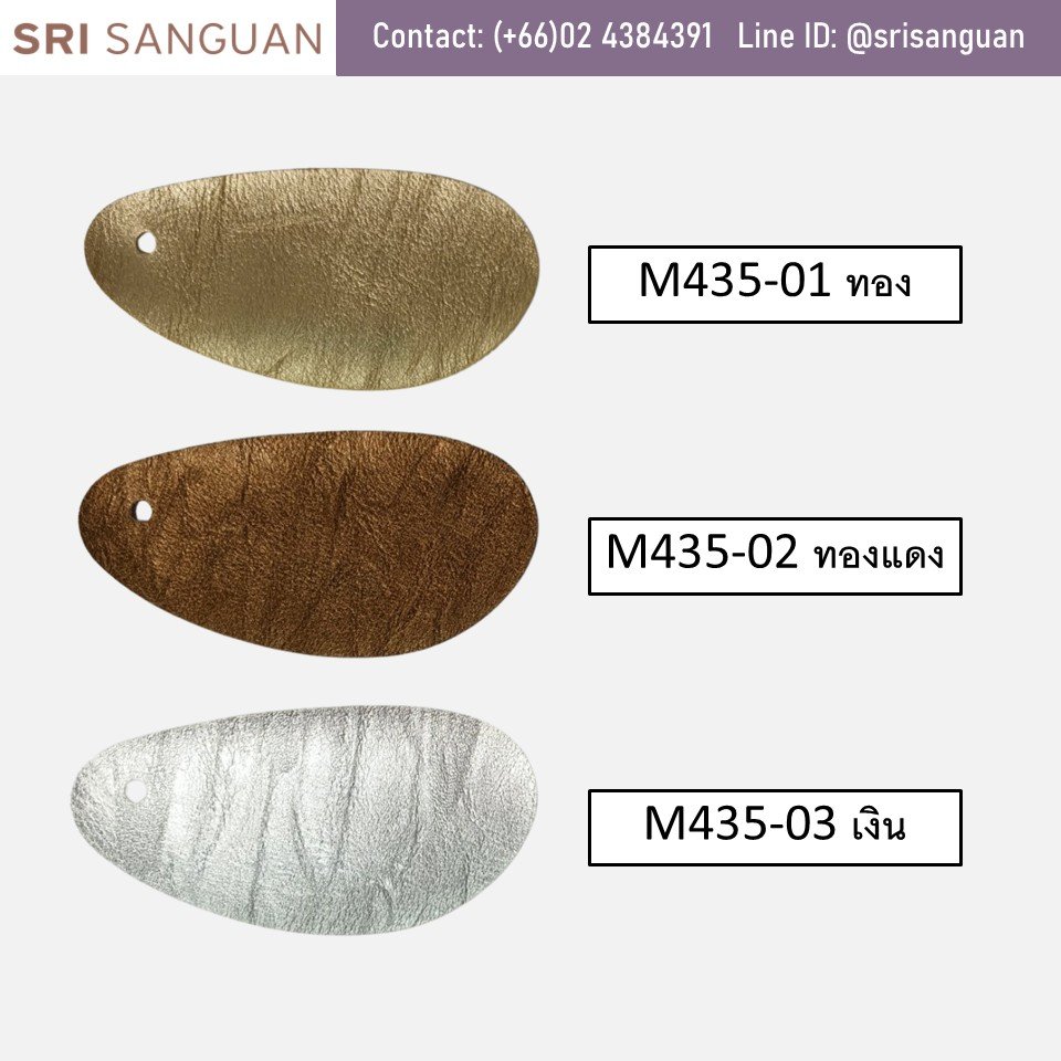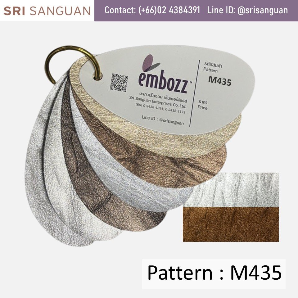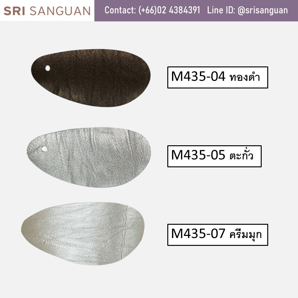 M435 is a large crinkle patterned PVC artificial leather in a metallic, shiny, light-reflecting tone. It is 0.9mm thick with a white fabric backing. Suitable for fashion designs, bags, shoes, diaries, and souvenirs.