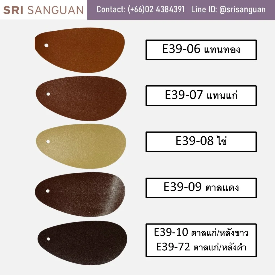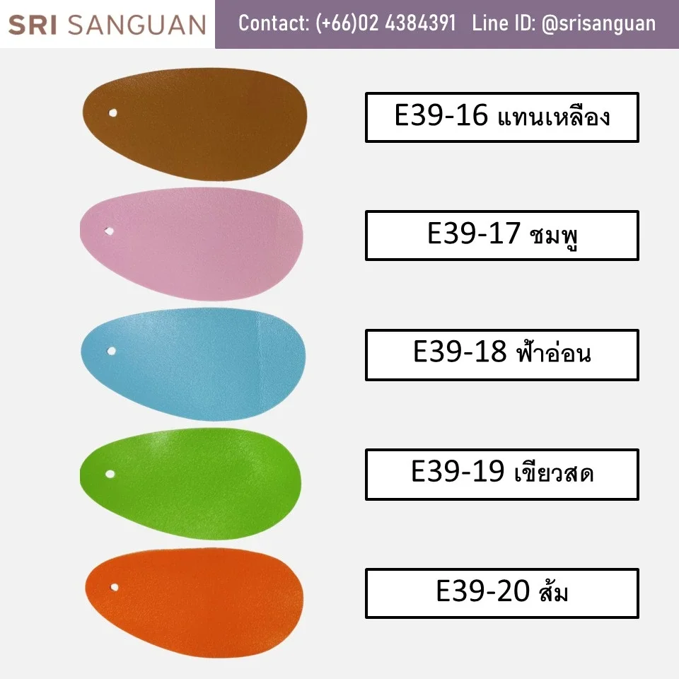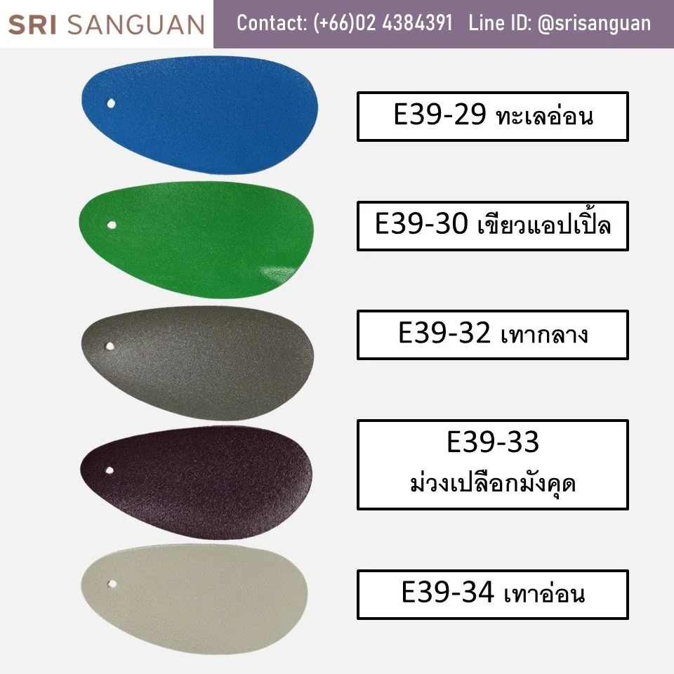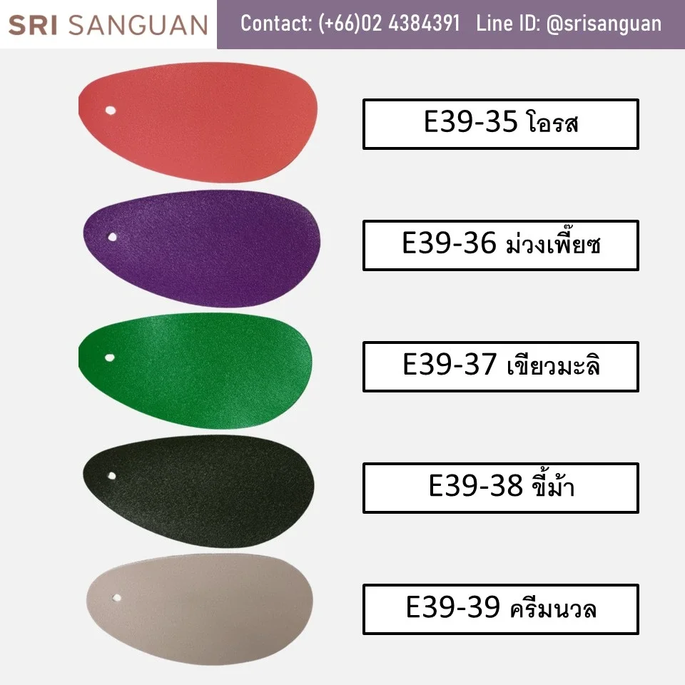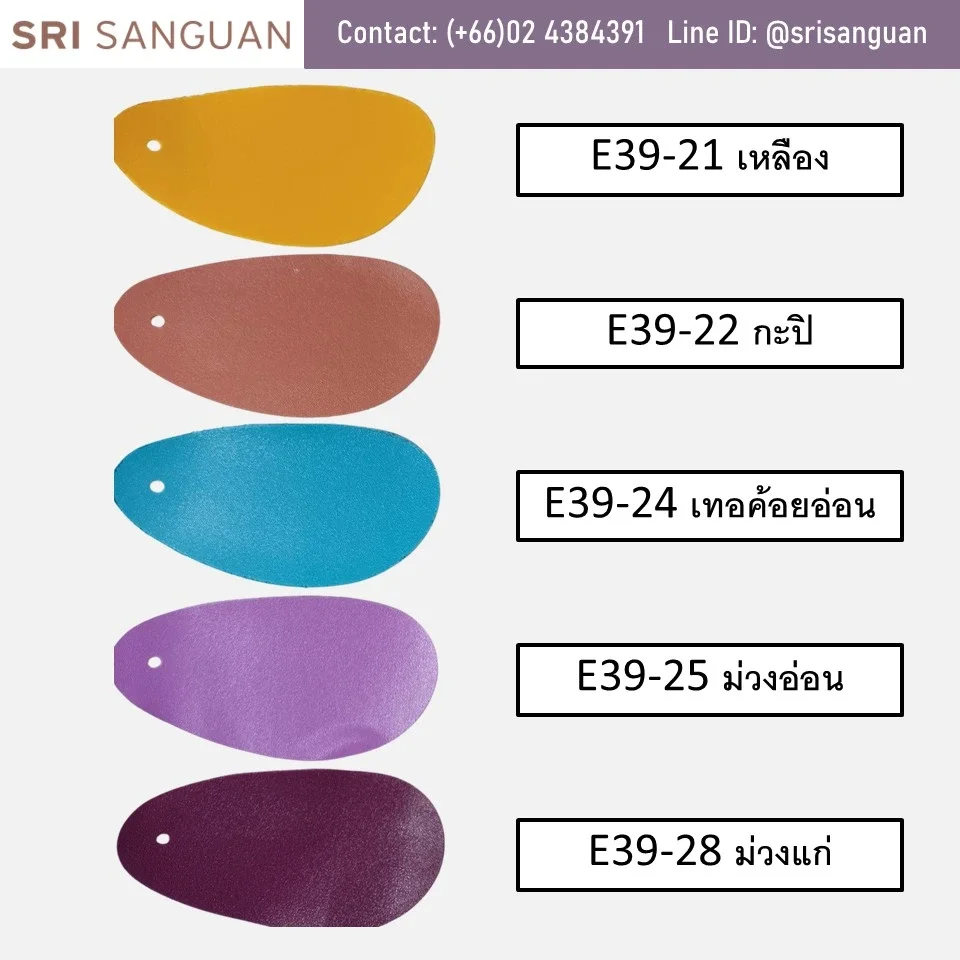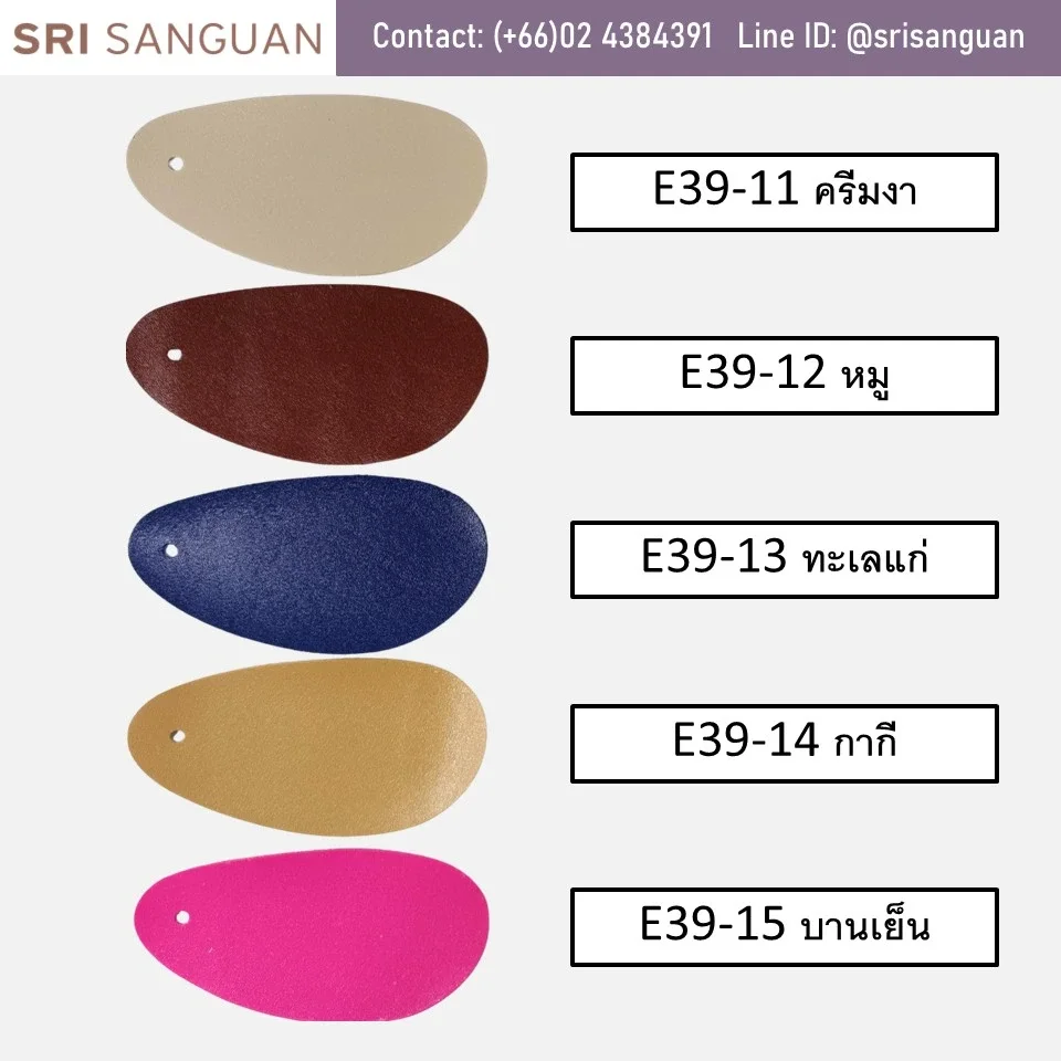 หนังเทียมพีวีซี E39 ลายลักษณะเป็นลายรูขน (Hair Cell) เป็นลายยอดนิยมที่มีสีให้เลือกเยอะกว่า 38สี ทั้งสีStandardและสีแฟชั่นหลากหลายตามเทรนด์ เหมาะสำหรับทำกระเป๋า งานพรีเมี่ยม รองเท้า เฟอร์นิเจอร์ แฟ้ม ของชำร่วย