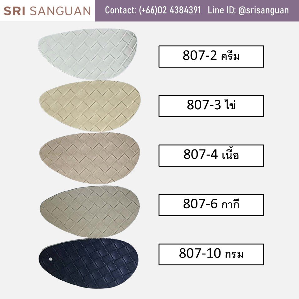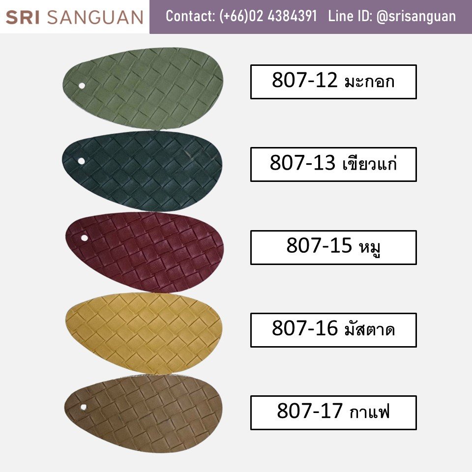 807 เป็นหนังเทียม PVC ลายสานใหญ่ ขนาดประมาน 1.0 ซม สานมีมิติ ผิวค่อนไปทางด้าน หนา 1.0mm เหมาะสำหรับใช้ทำกระเป๋าถือ กระเป๋าแฟชั่น