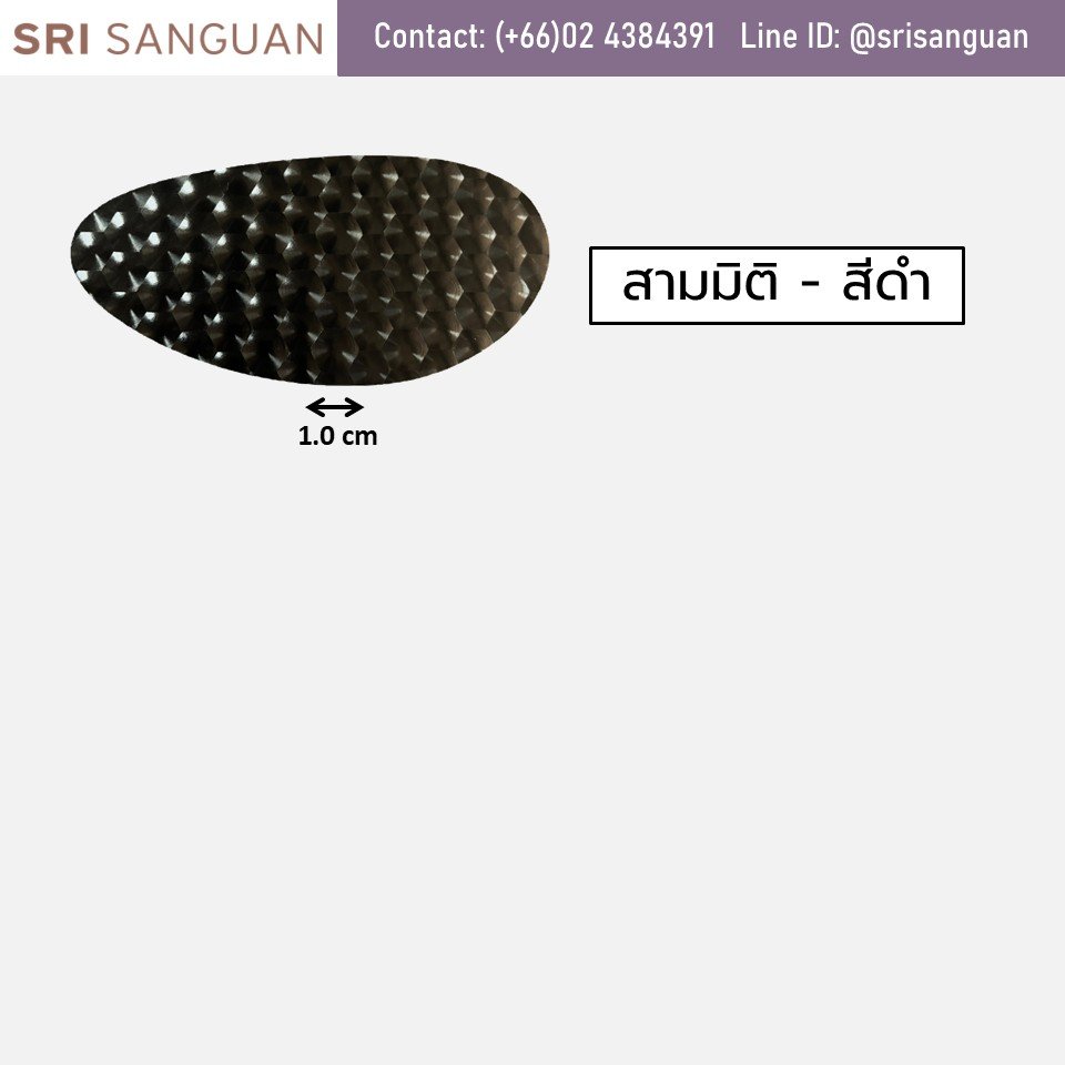 หนังเทียม PVC ลายสามมิติ (หกเหลี่ยม) ความกว้าง 1 ซม. สีดำ เงา ลายเหมือนเป็น3มิติ หนา 1.0 มม. หลังผ้ายืด เหมาะสำหรับบุเบาะมอไซต์